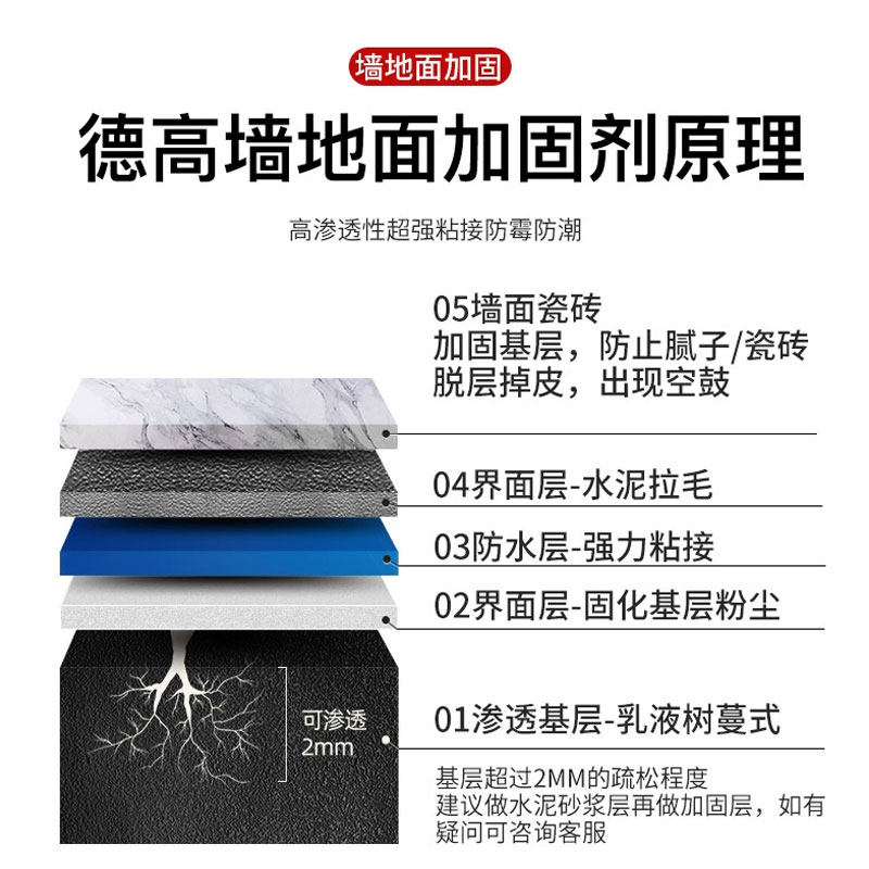 德高墙固防潮墙面加固剂墙固地固界面剂改善粘接力封闭粉尘墙固胶