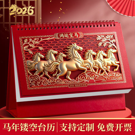 台历2026年新款镂空剪纸日历定做大号办公桌摆件企业礼品日历订制国风马年新款创意新年月历定制专版印刷广告