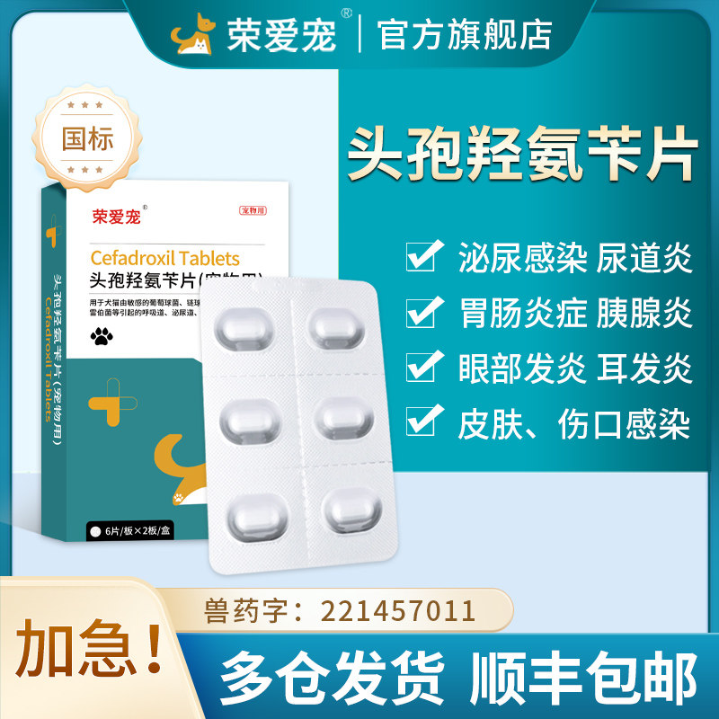 荣爱宠头孢羟氨片宠物犬用狗狗猫咪感冒药消炎咳嗽肠胃炎拉稀呕吐
