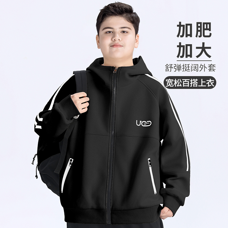 胖童装男童外套加肥加大春秋冬装初中学生加厚针织上衣中大童冬季