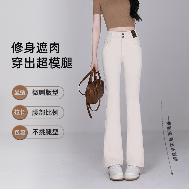 高腰微喇牛仔裤女款爆款早秋2025新款修身显瘦小个子喇叭白色裤子