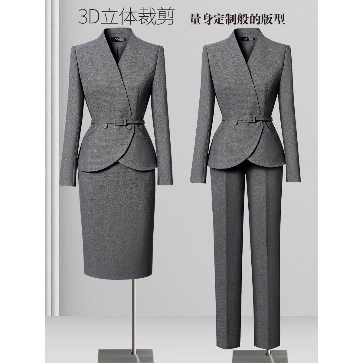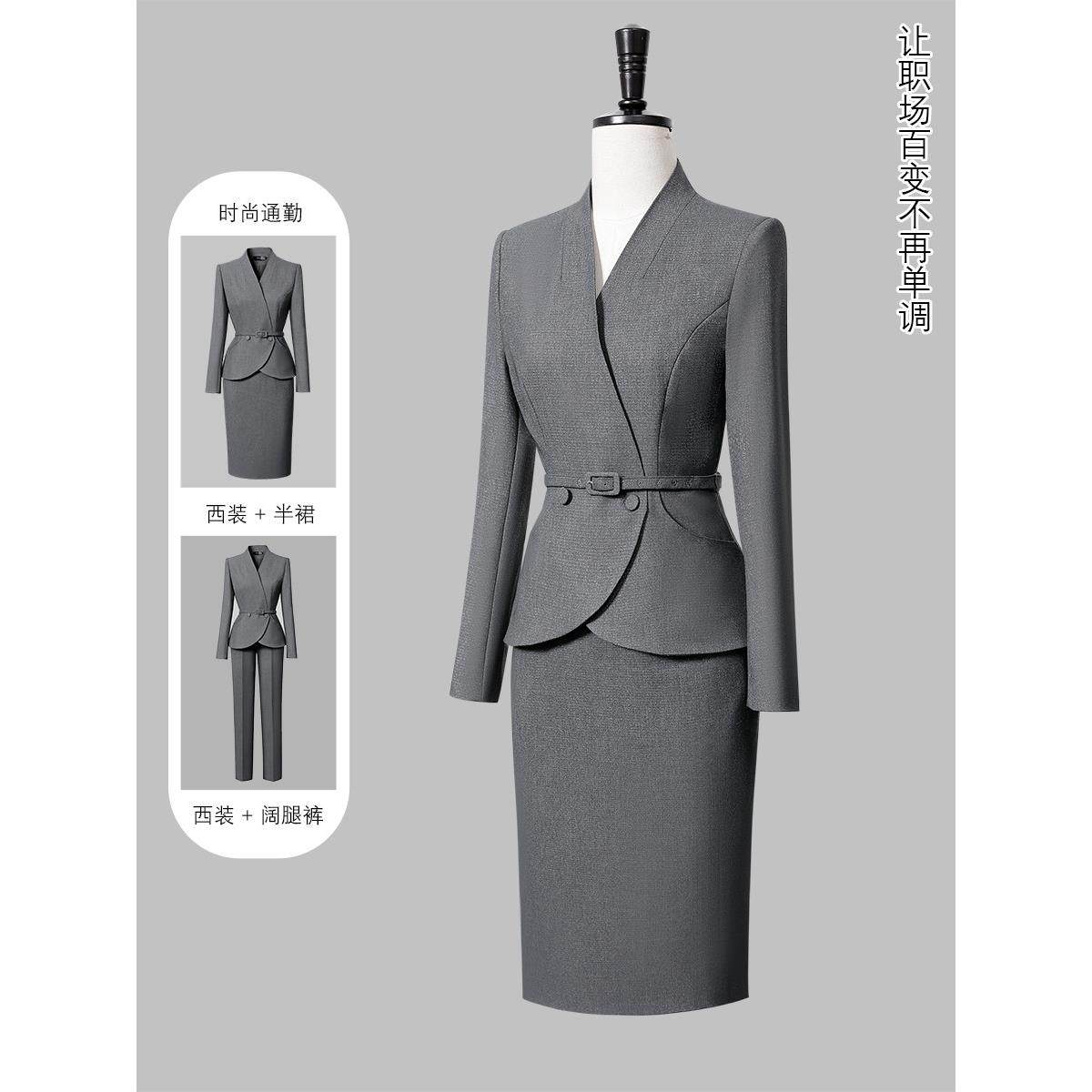 收腰西装套装女春秋2025新款正式场合职业套裙置业顾问会务工作服