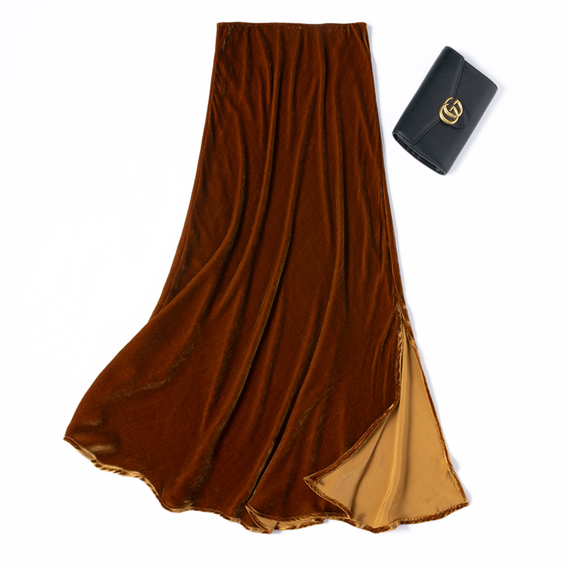 华丽丝绒鱼尾裙!真丝开叉长半裙