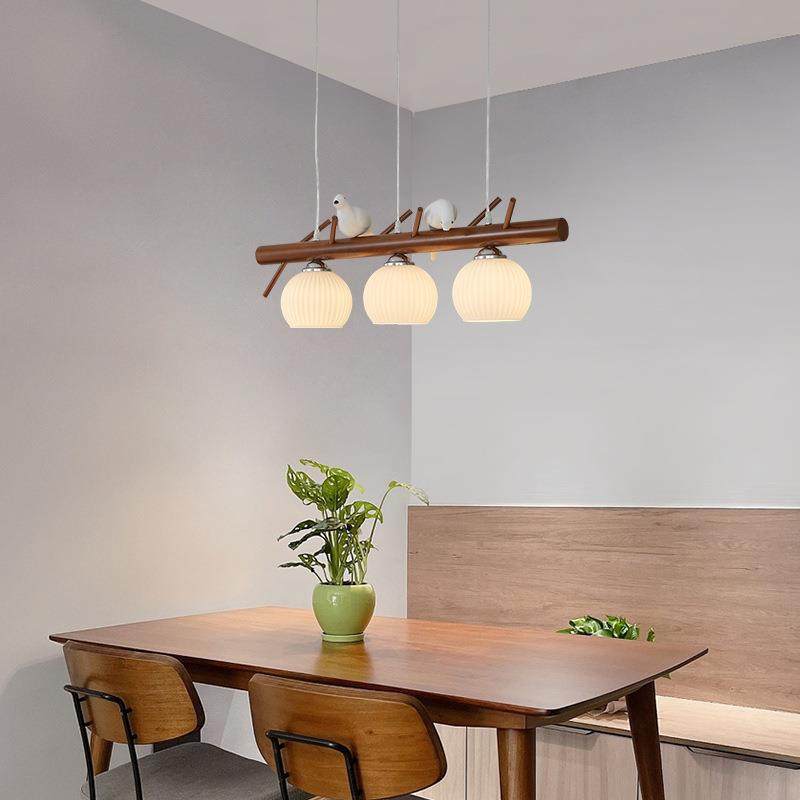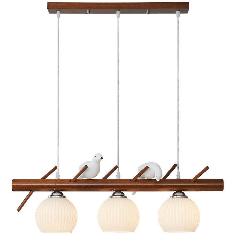 餐厅吊灯三头新中式长条吧台灯餐桌饭厅灯胡桃色复古小鸟装饰灯具