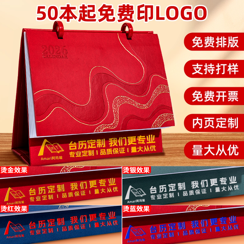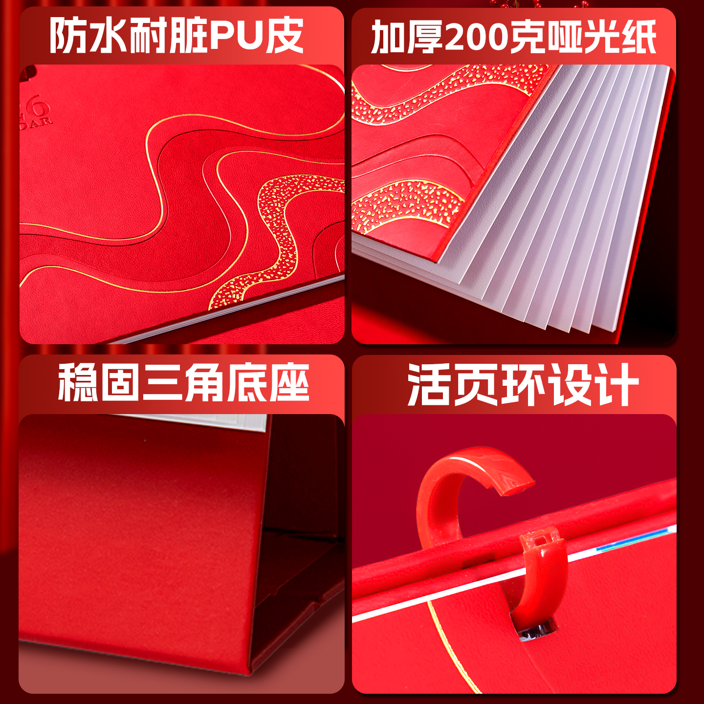 2026年台历礼盒套装办公室商务月历桌面摆件马年工作打卡皮面日历创意简约风公司年会礼品企业定制印logo刻字
