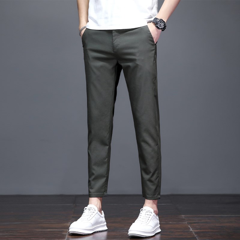 九分休闲 裤男士夏季冰丝薄款直筒修身西裤弹力百搭潮流锥形