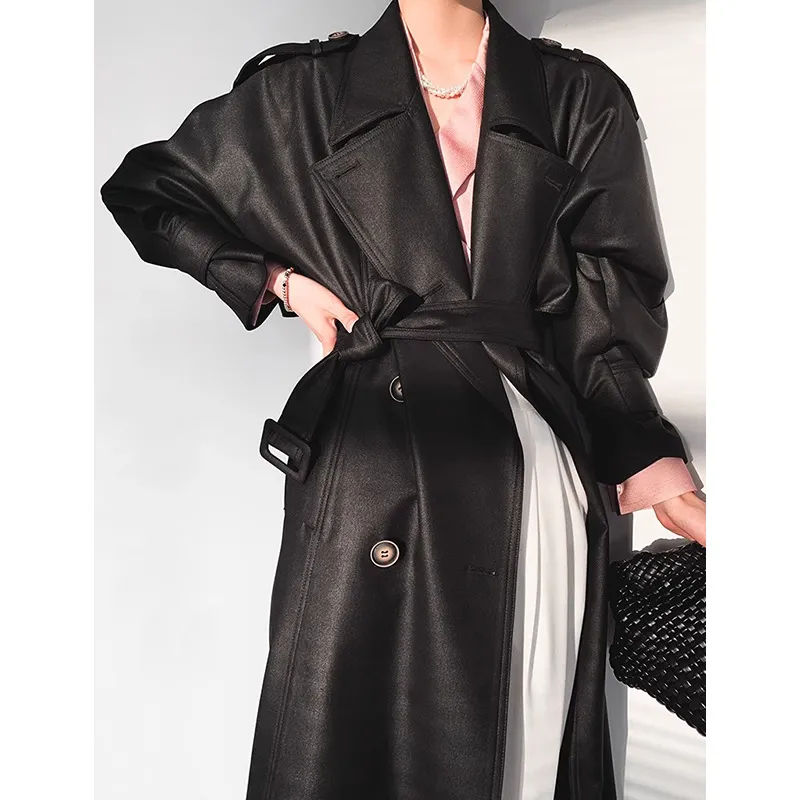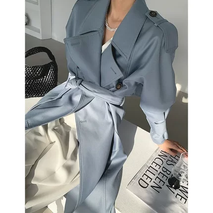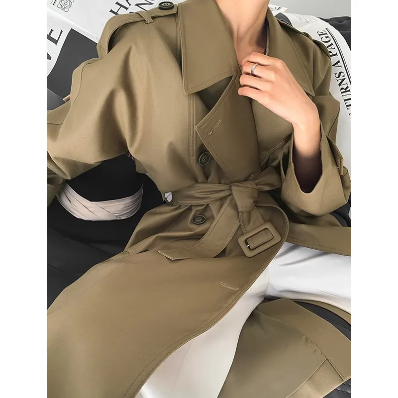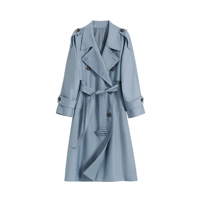 荣太复古英伦风气质双排扣中长款风衣外套女2025早春新款系带大衣