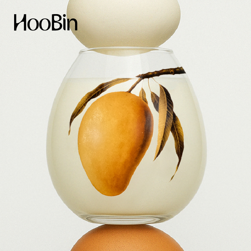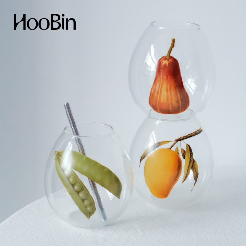 HooBin 丰收系列蛋形牛奶杯 莲雾芒果豌豆蔬果图案 玻璃透明异形