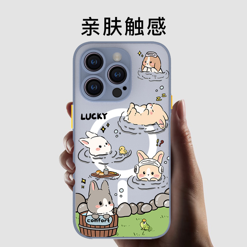 适用于iphone16e肤感磁吸14magsafe手机壳网红磨砂se灰色15plus全包11pro卡通12max泡温泉13mini兔子17air