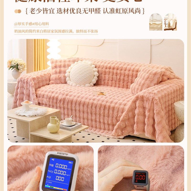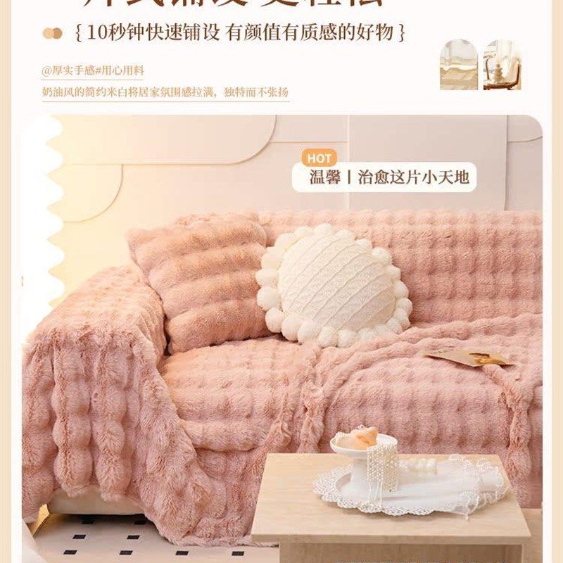 麦颜兔毛绒沙发盖布2025新款冬季暖感坐垫加厚沙发巾一整张全盖毯
