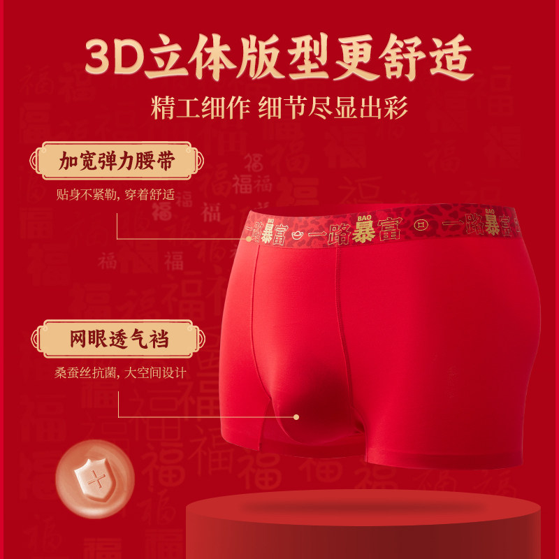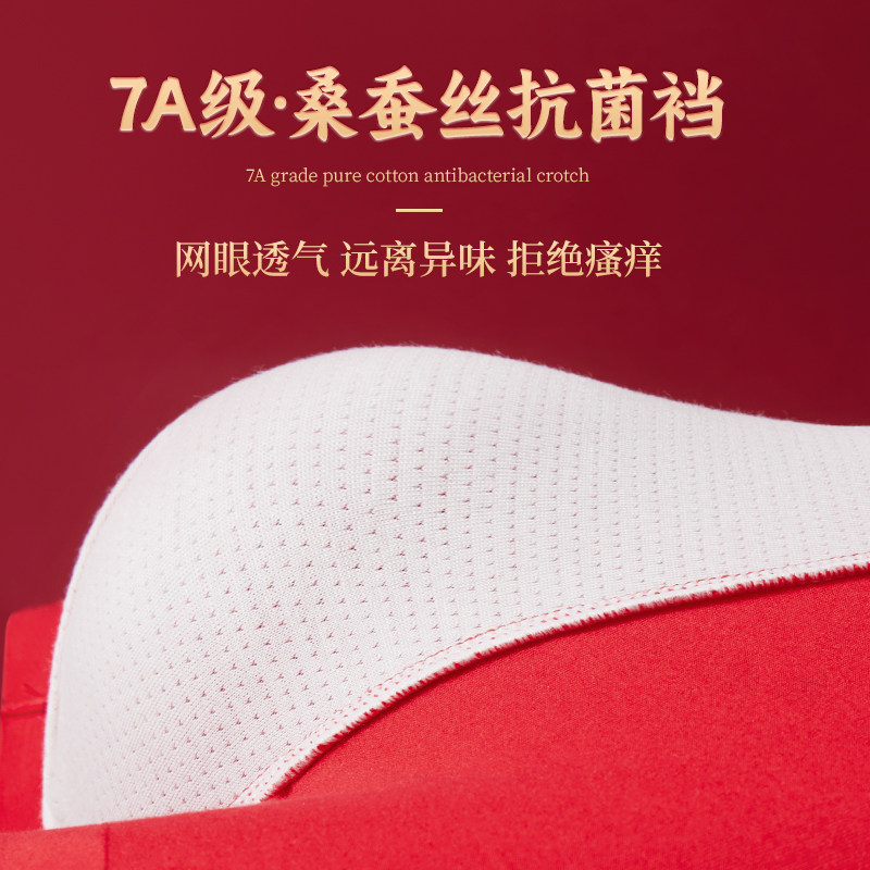 七色纺七色纺本命年男士四角无痕内裤大红色礼盒装蛇年抗菌平角裤