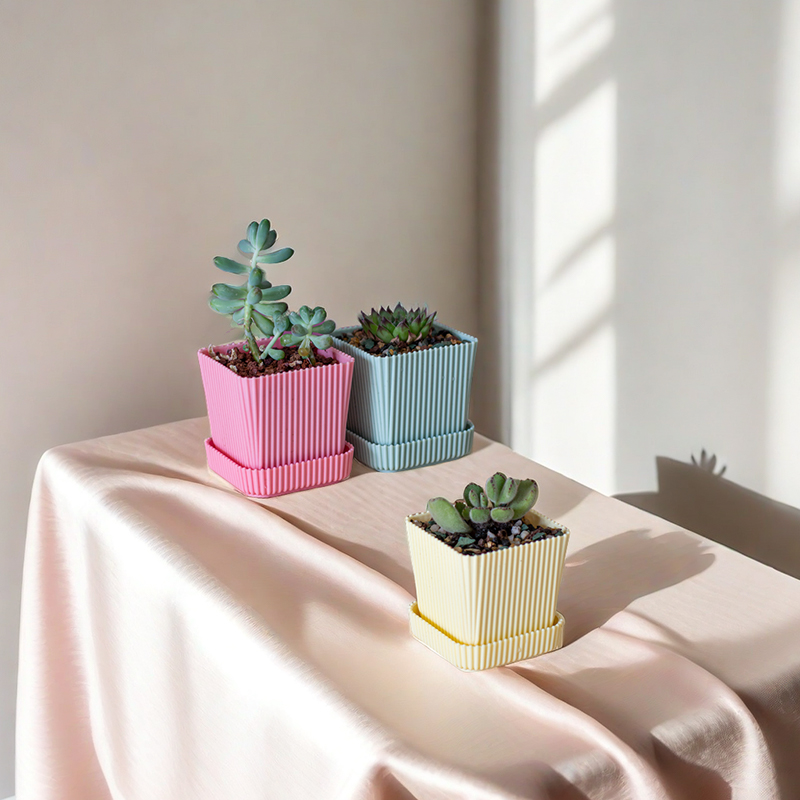 多肉花盆带托盘塑料加厚小植物组合树脂创意方形圆形白色欧式包邮