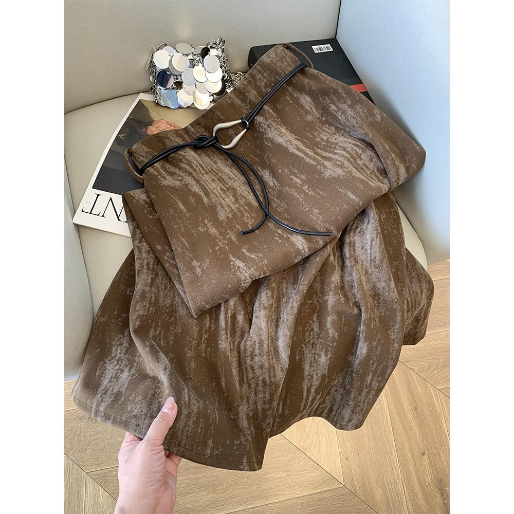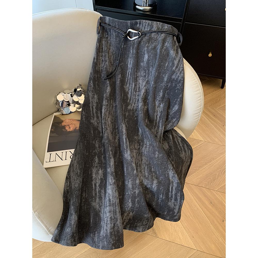 复古辣妹风高腰显瘦晕染半身裙女秋季时尚气质配腰带a字长裙