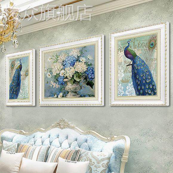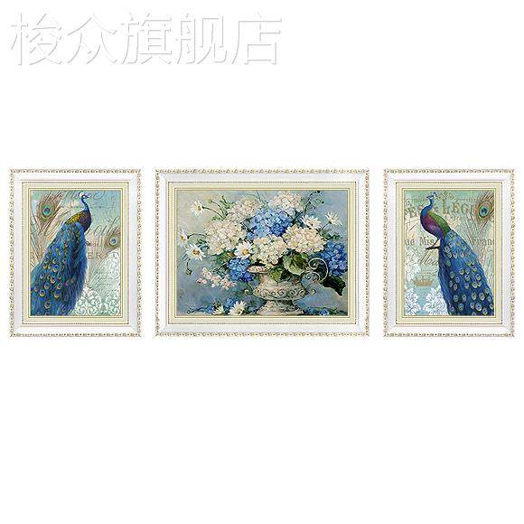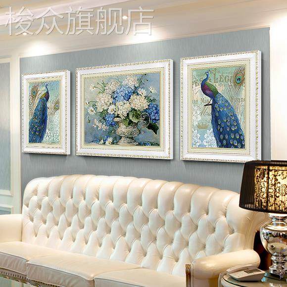 欧式风格客厅装饰画壁画简欧沙发背景画墙画大气三联高档孔雀挂画