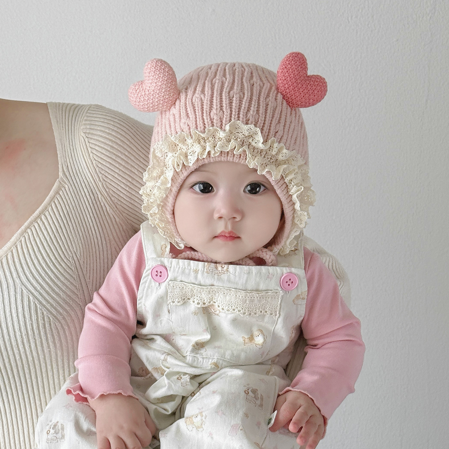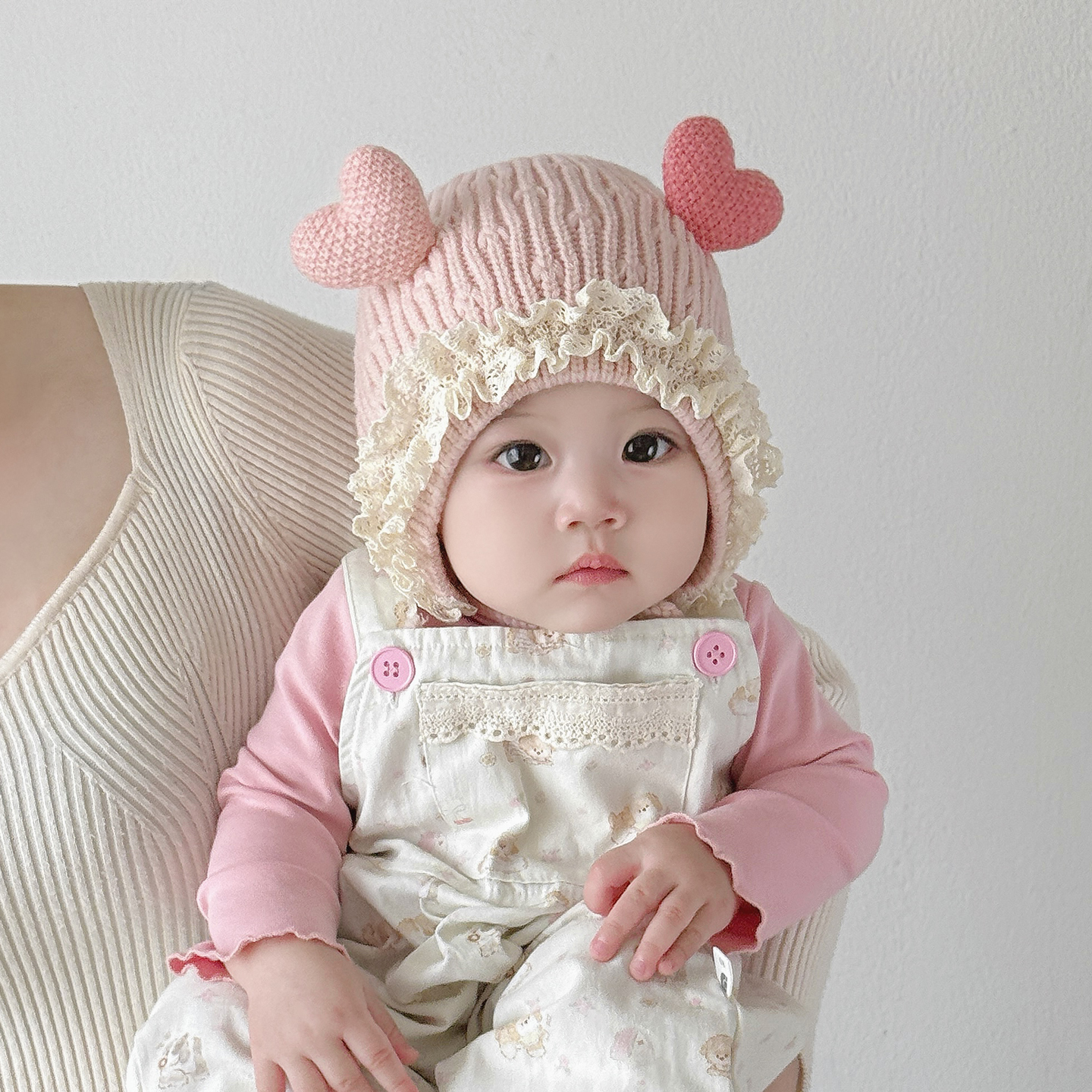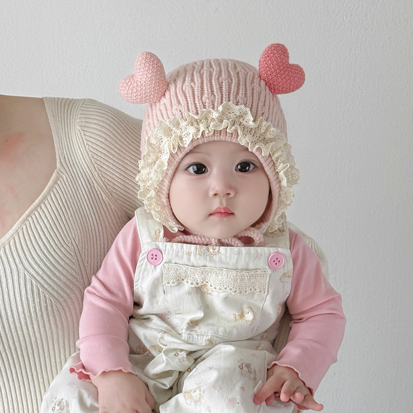 婴儿帽子秋冬季宝宝毛线帽女童护耳针织帽儿童婴幼儿冬季加厚洋气