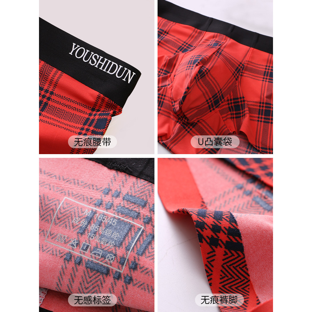 内裤男士平角无痕内裤运动青年透视U凸冰丝性感纯色透明四角低腰