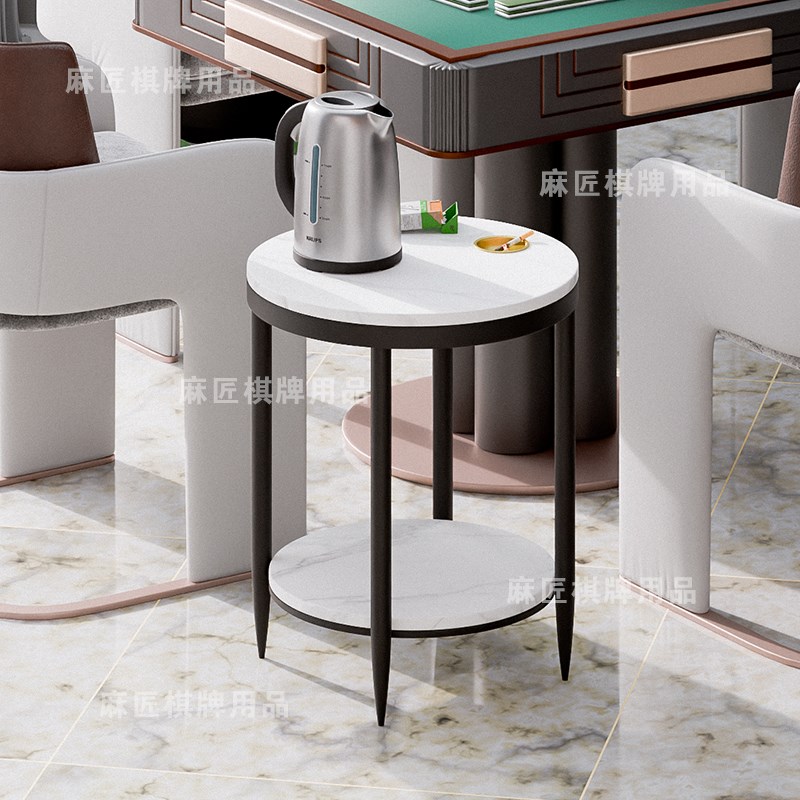 简约棋牌室多功能茶几麻将机茶水架麻将桌边角几轻奢圆形小茶几