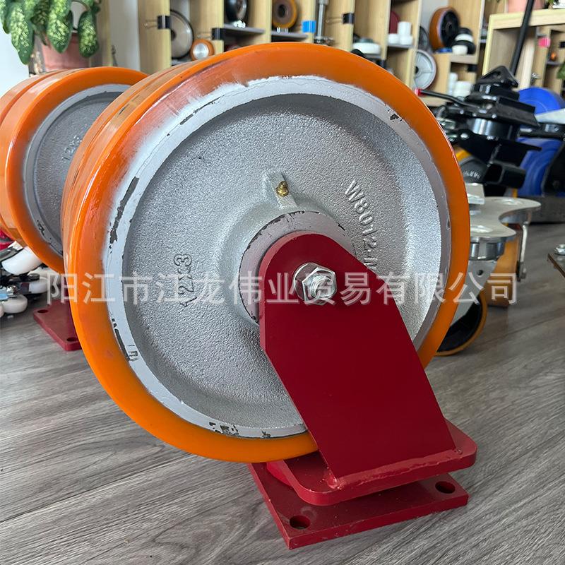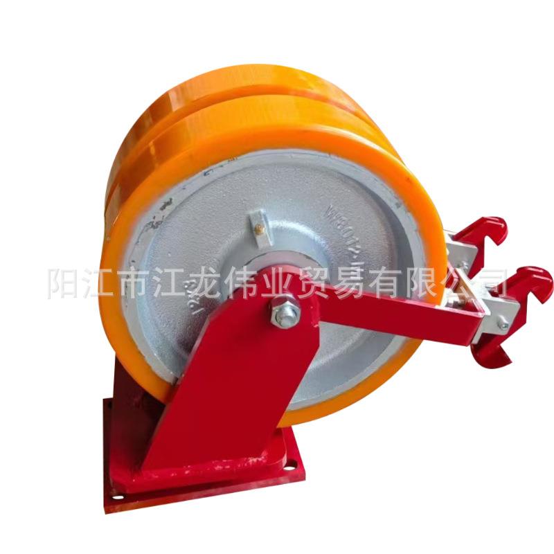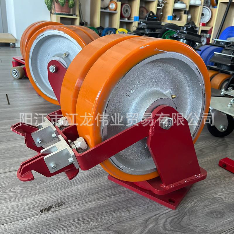 8x3超重型铸铁包PU固定脚轮4吨重型双排轮轮踏板刹车移动轮