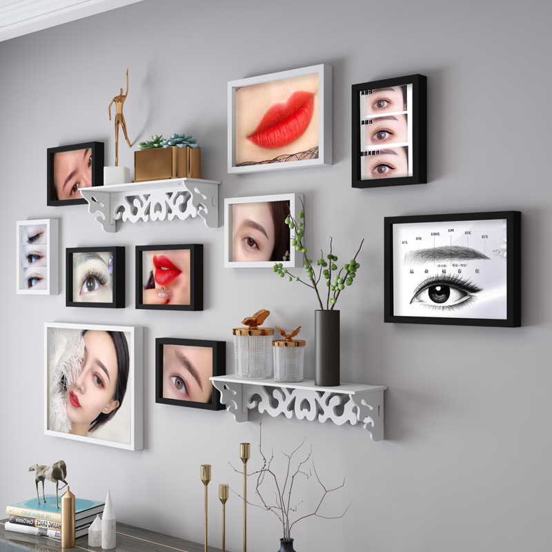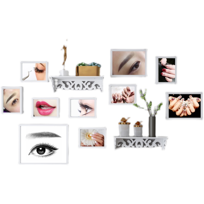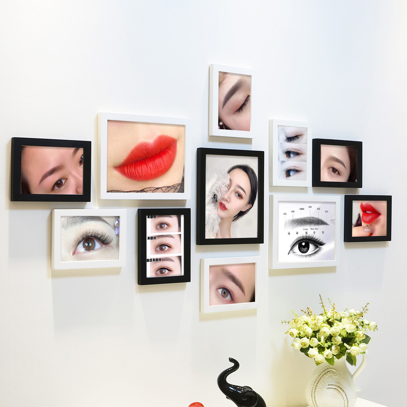 简约美甲照片墙装饰创意个性相框墙纹绣挂墙组合眉眼唇相片墙