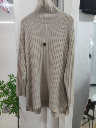实体店欧货高领坑条宽松毛衣秋冬女装高级感显瘦中长款设计款