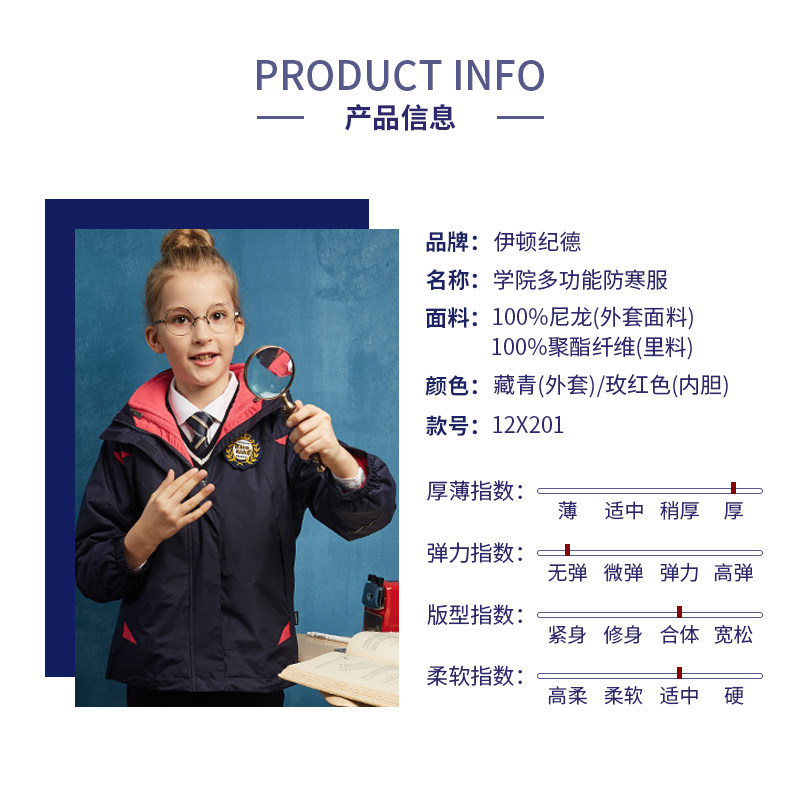 伊顿纪德校服女童外套伊顿儿童防寒服装藏青脱卸保暖外套班服团购