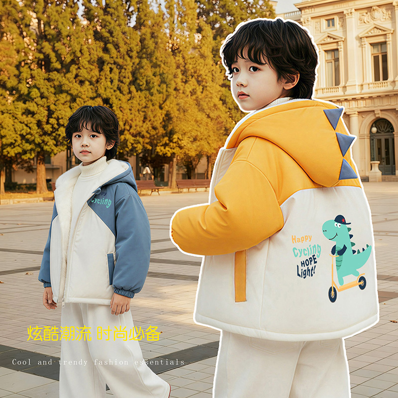 男童加绒外套秋冬款2025新款儿童加厚韩版帅气休闲服宝宝冬装棉服