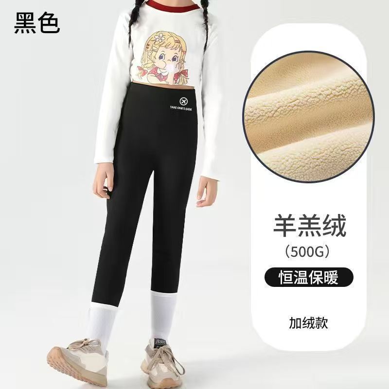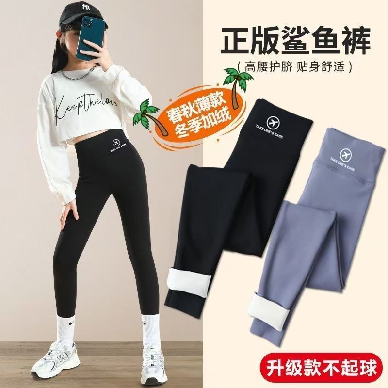 女童加绒鲨鱼裤秋冬外穿儿童一体绒打底裤中大童冬季加厚保暖裤子