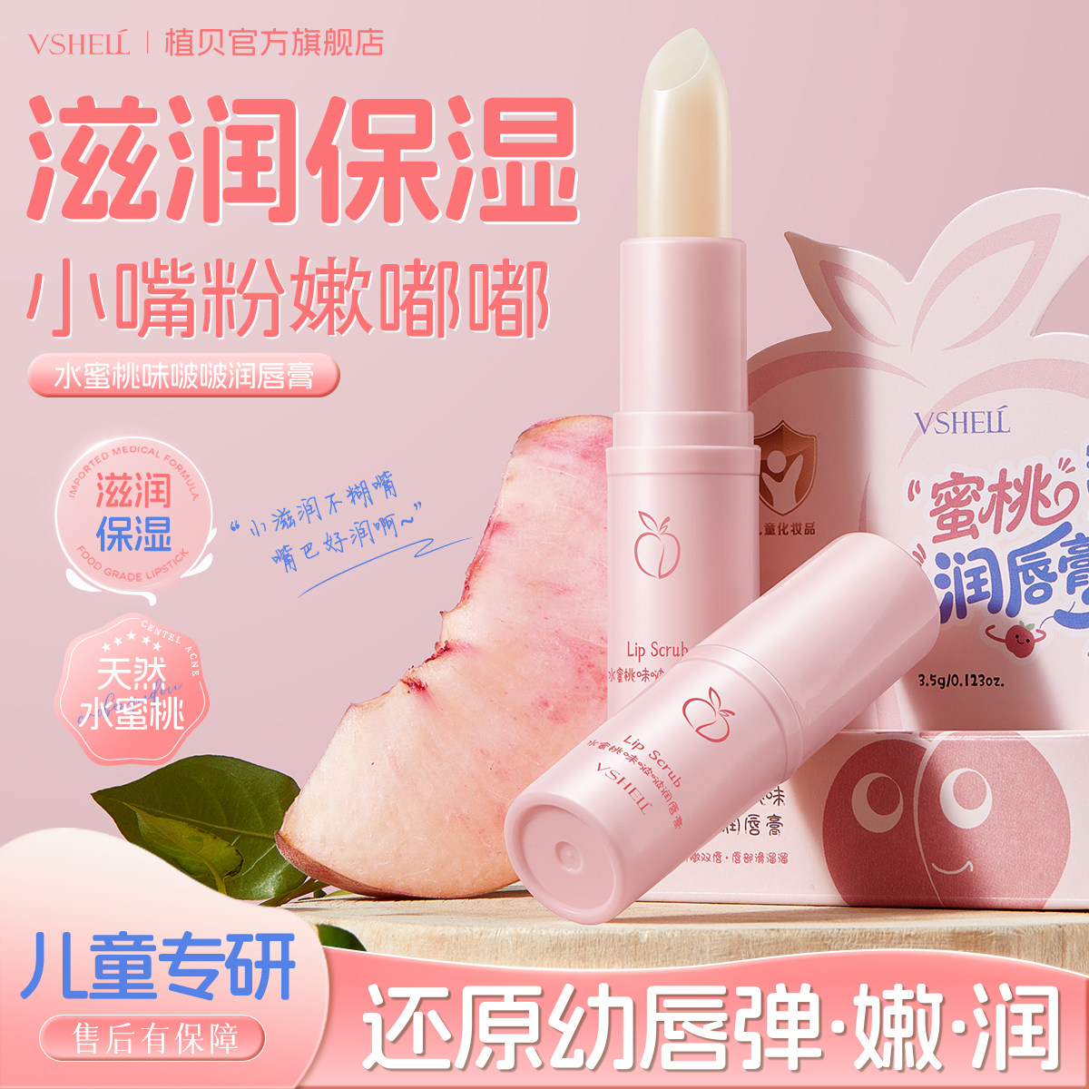 儿童润唇膏小女孩专用水蜜桃女保湿滋润补水防干裂去死皮淡化唇纹