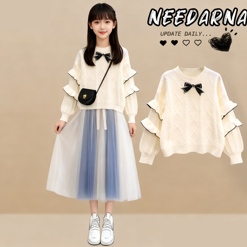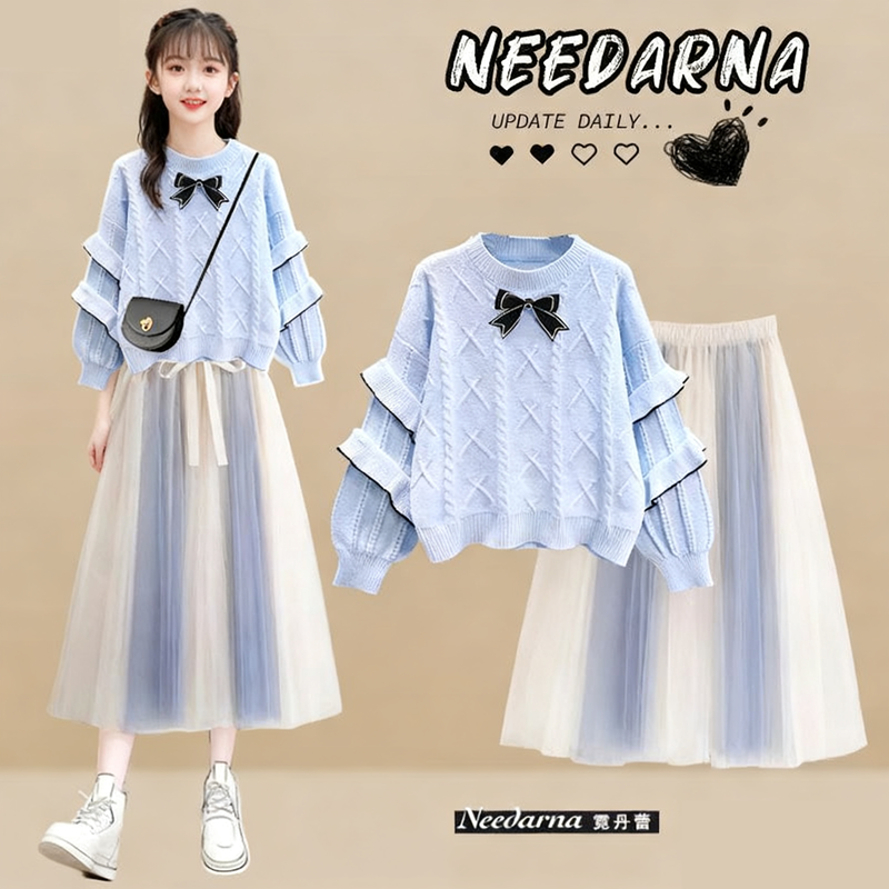 女童巨好看秋装套装中大童毛衣洋气时髦秋冬超好看炸街裙子两件套