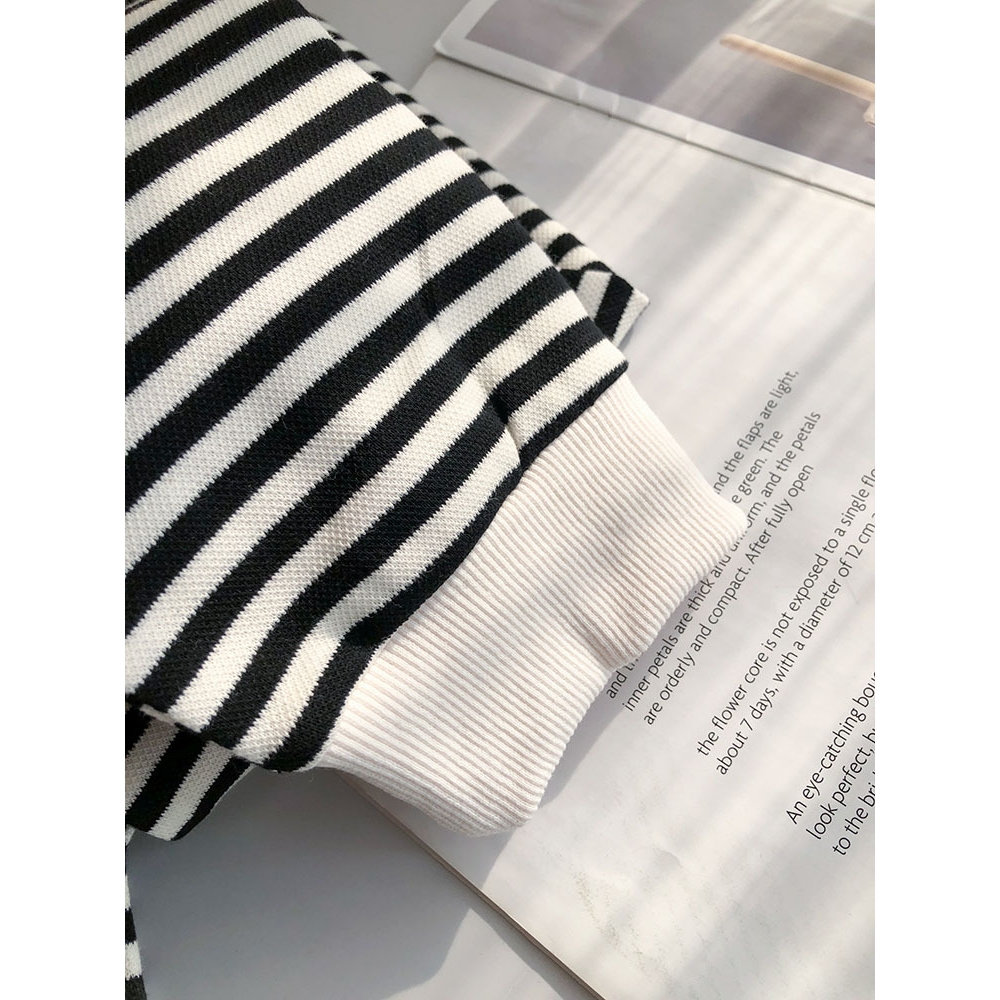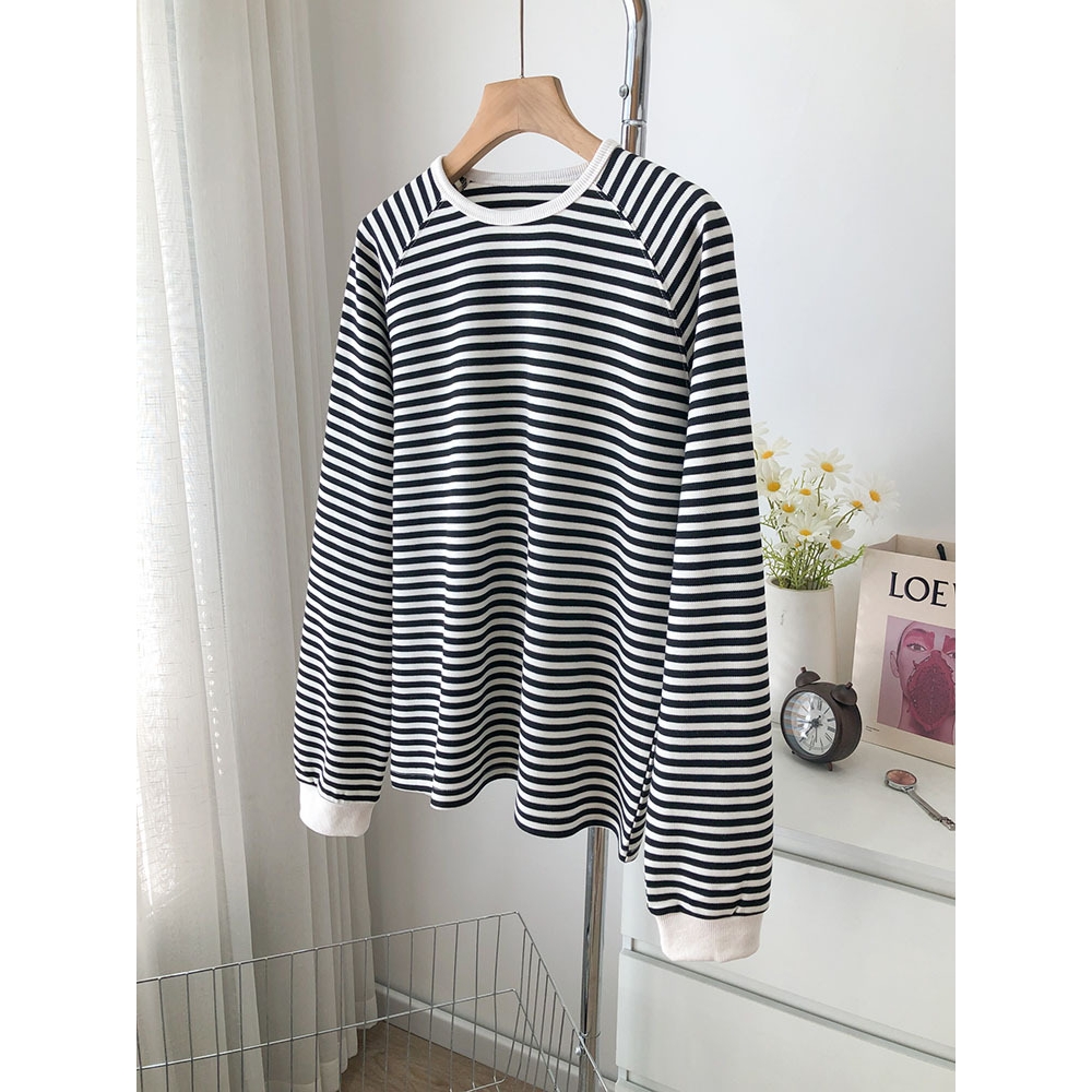 春装新款条纹纯棉卫衣2025薄款打底衫女上衣圆领宽松百搭长袖t恤