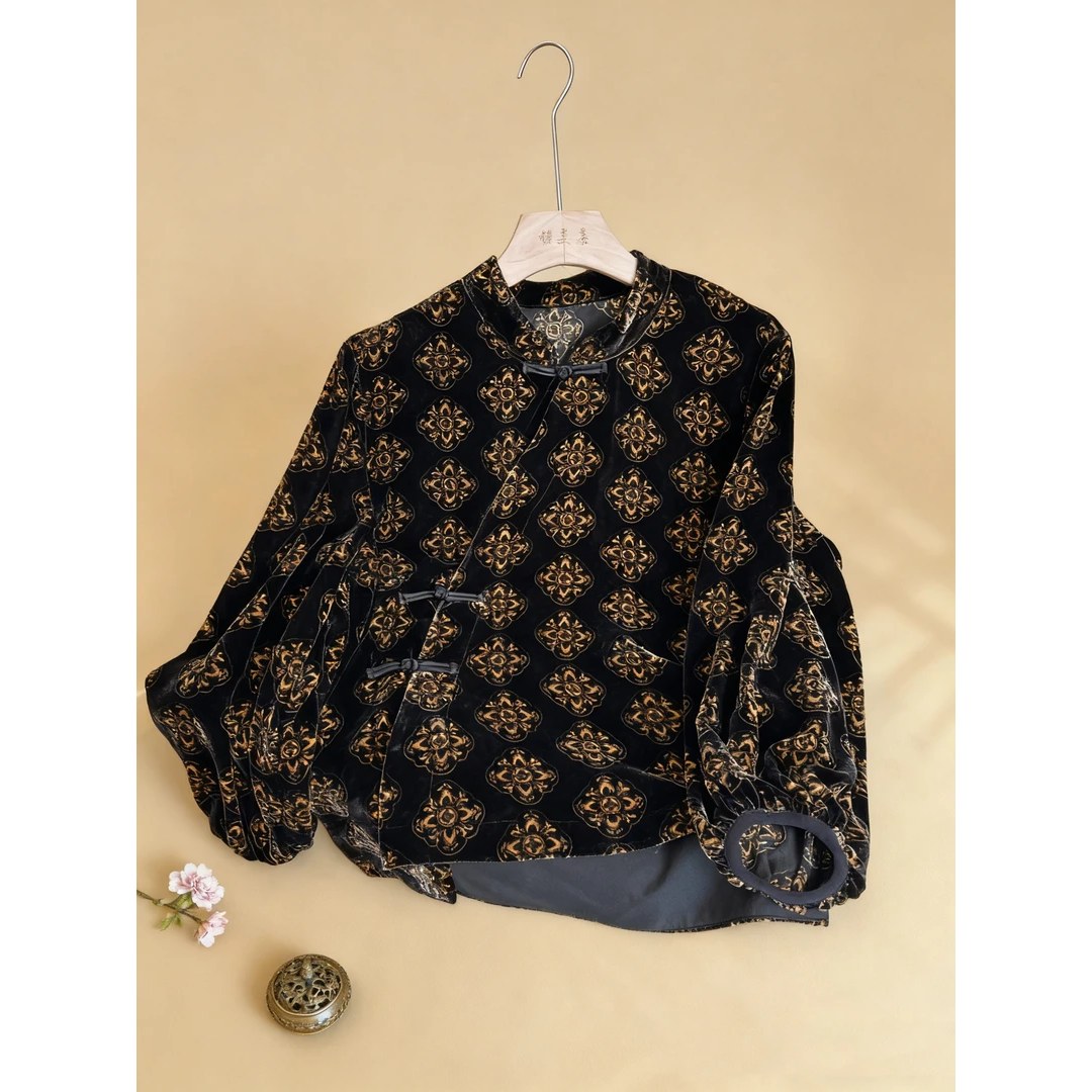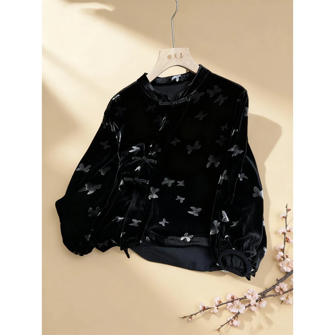 DY3111樱美嘉100桑蚕丝真丝丝绒新中式国风早秋女上衣长袖衬衫