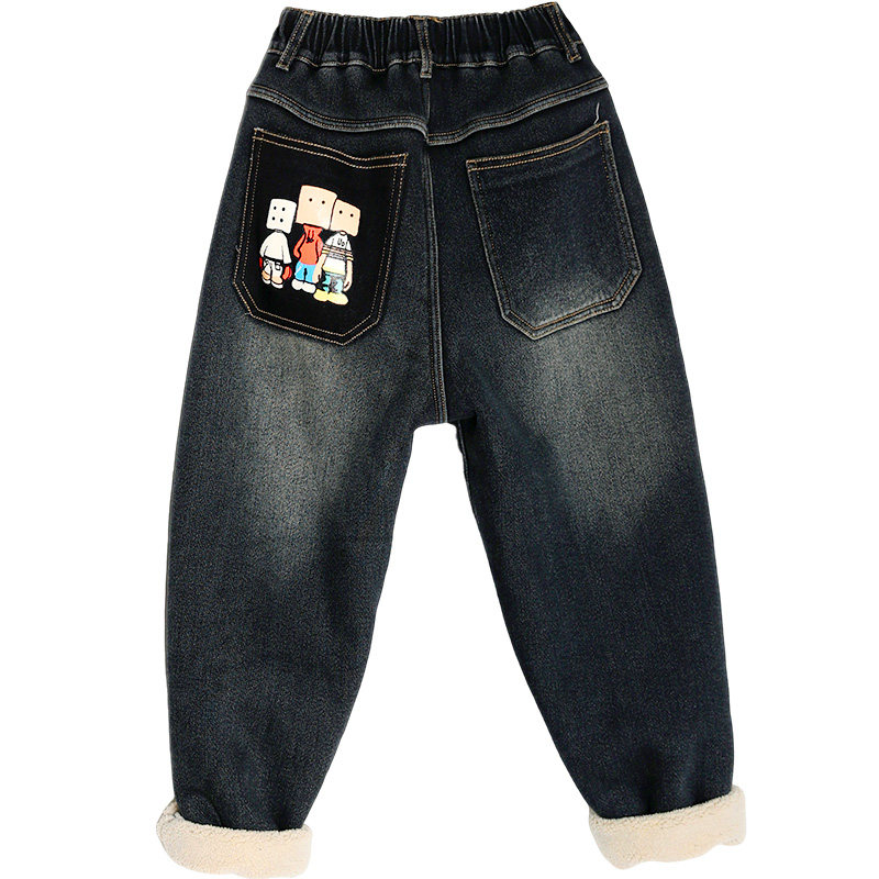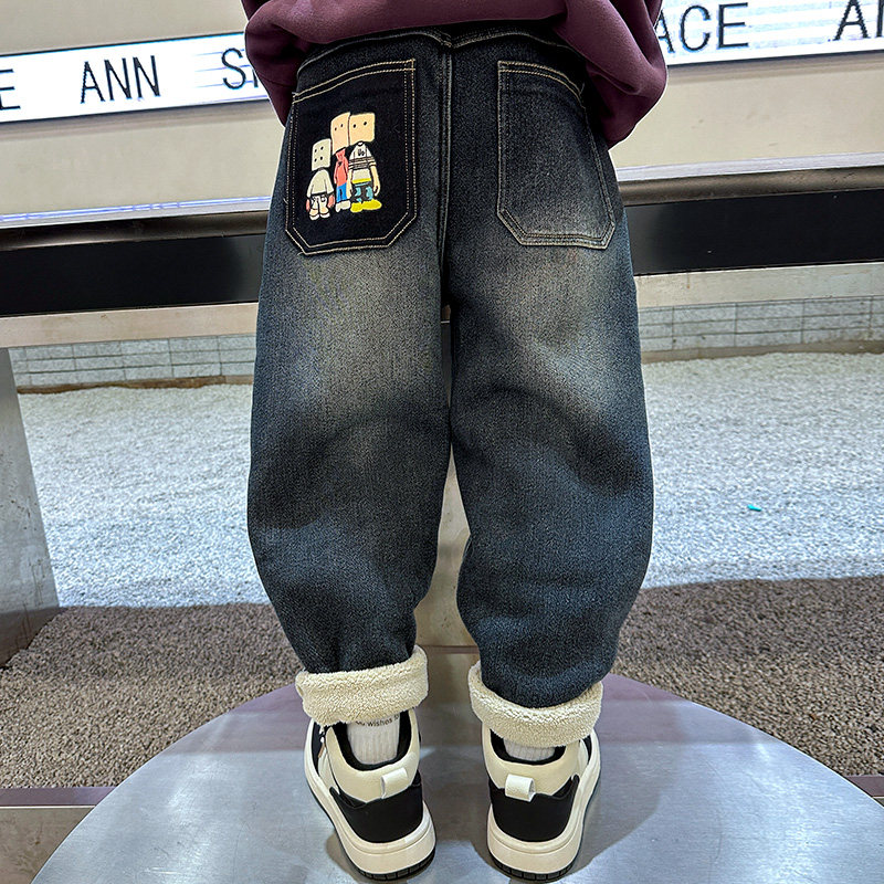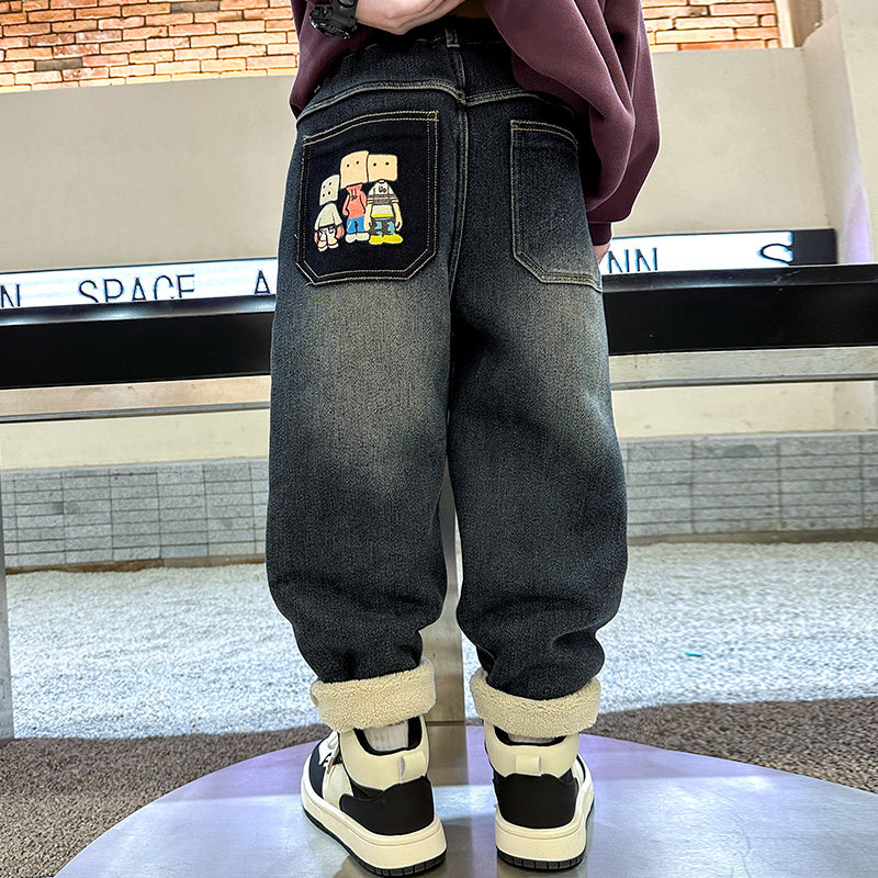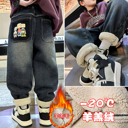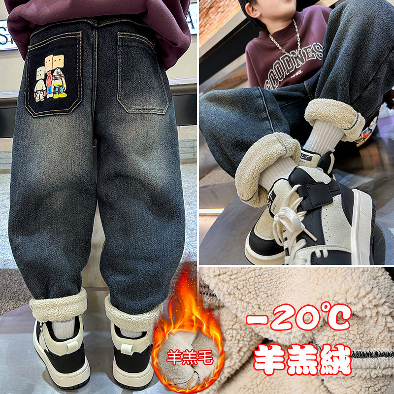 2025冬款男童加绒加厚牛仔裤子中大童儿童炸街羊羔绒痞帅长裤秋冬