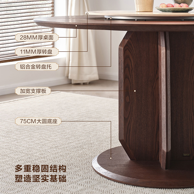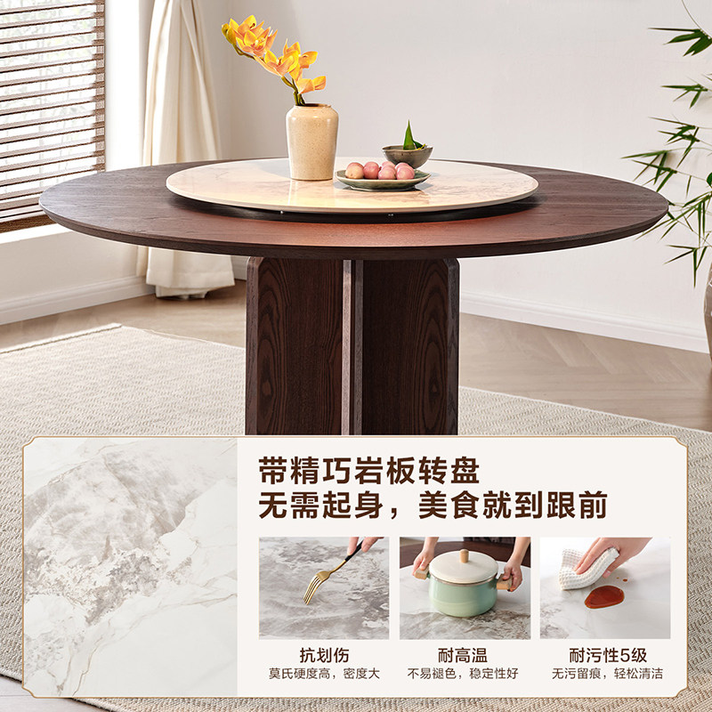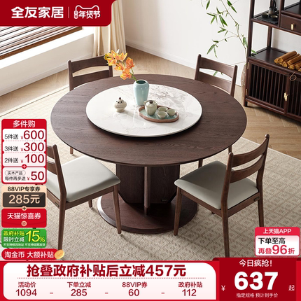 全友家居2025新款新中式圆形餐桌客厅家用带岩板转盘饭桌椅组合