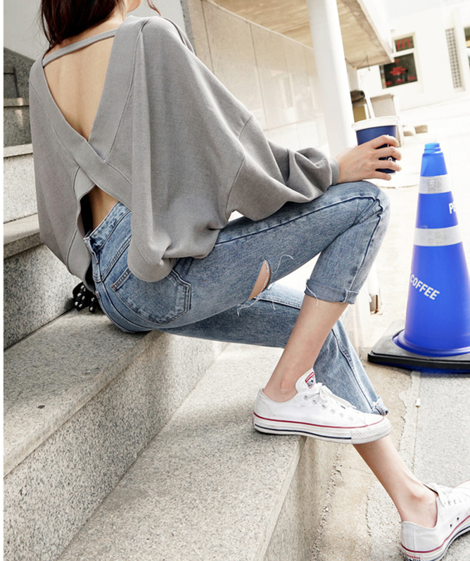 新款洋气风蝙蝠袖显瘦露背上衣