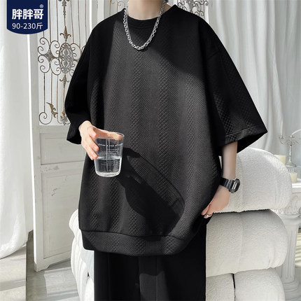 胖胖哥华夫格短袖T恤男士夏季新款潮牌圆领大码半袖潮流宽松体恤
