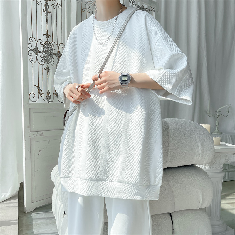 华夫格短袖T恤男士夏季新款潮牌