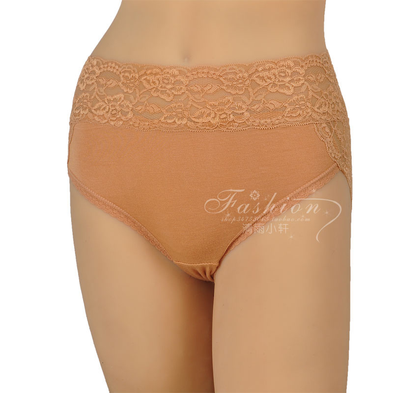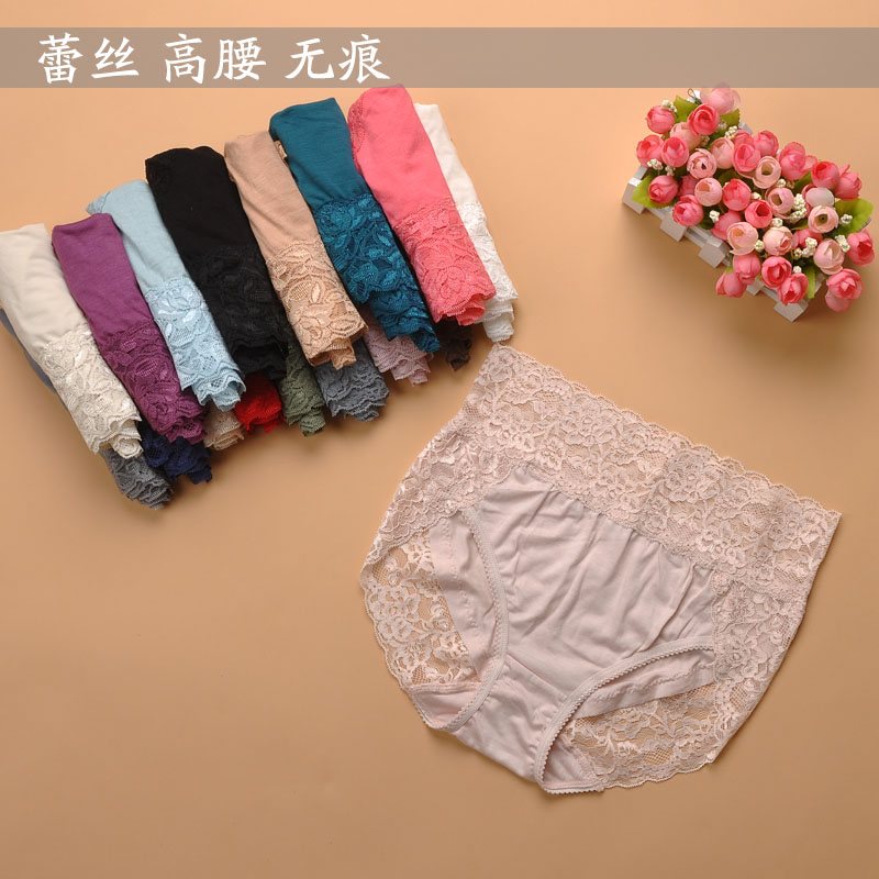 满3件包邮 性感无痕内裤女纯棉裆高腰莫代尔蕾丝边女士大码三角裤