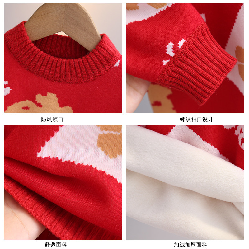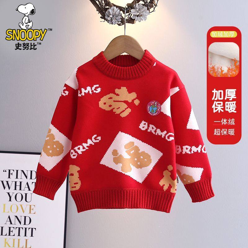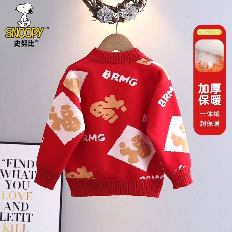 史努比女童秋冬毛衣新款一体绒福字上衣冬季小男孩新春过年拜年服