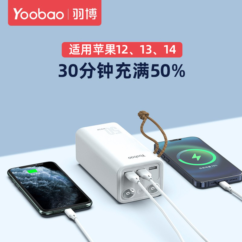 3C认证羽博充电宝50000毫安超大容量停电备用移动户外电源适用苹果iPhone12快充PD20w华为22.5W超级快充小米
