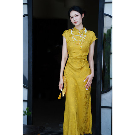 鹿与玫瑰新中式国风改良旗袍连衣裙女夏季新款修身显瘦气质长裙子