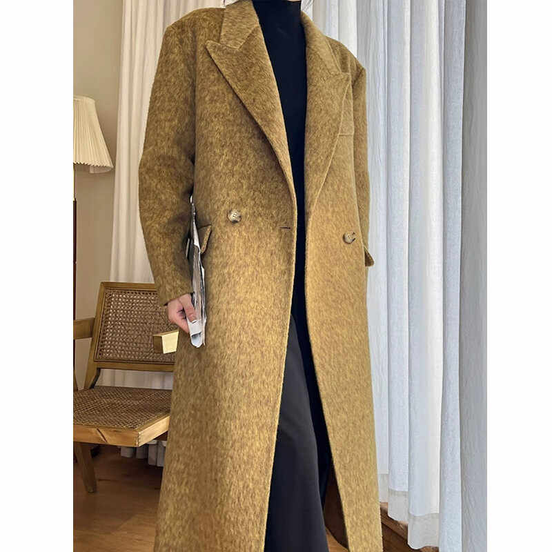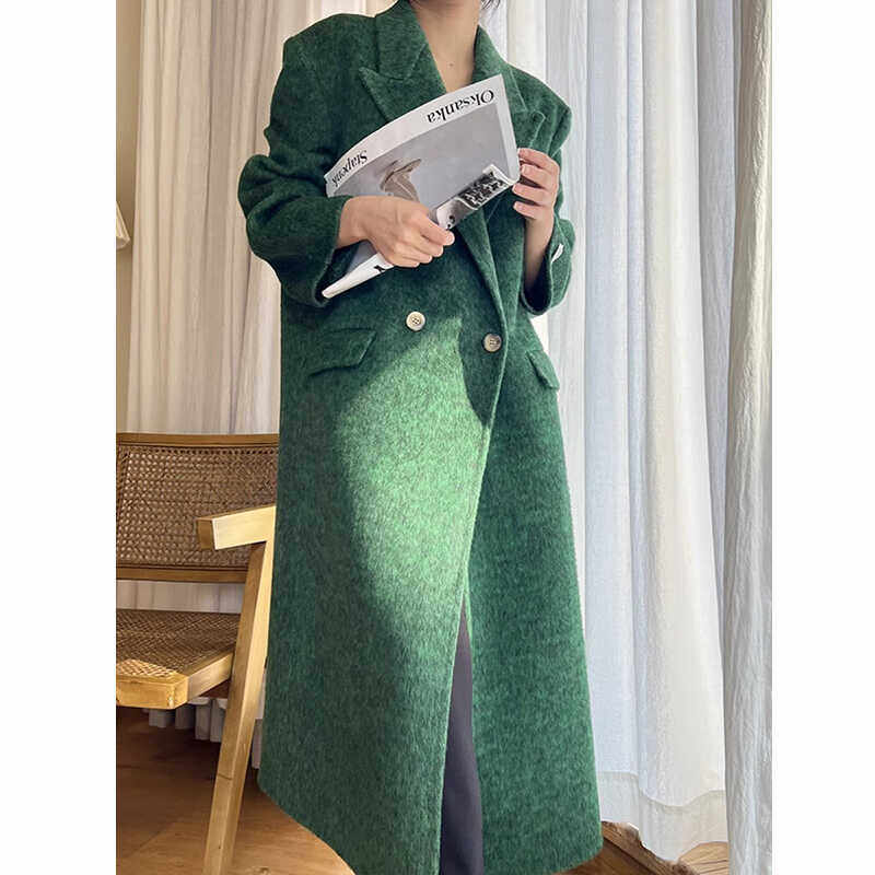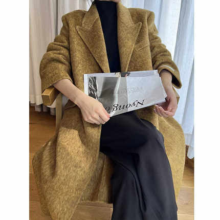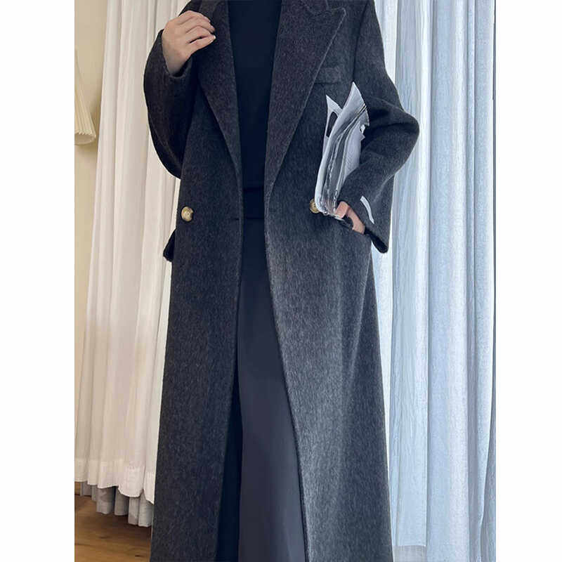 炭黑色赫本风双面羊绒大衣女2025秋冬新款加厚韩版宽松毛呢子外套
