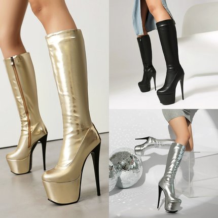 钢管舞鞋走秀演出鞋细跟高筒靴