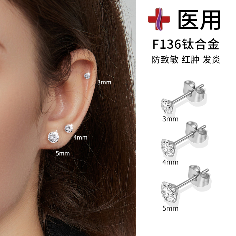 养耳洞F136医用钛合金钻石耳钉