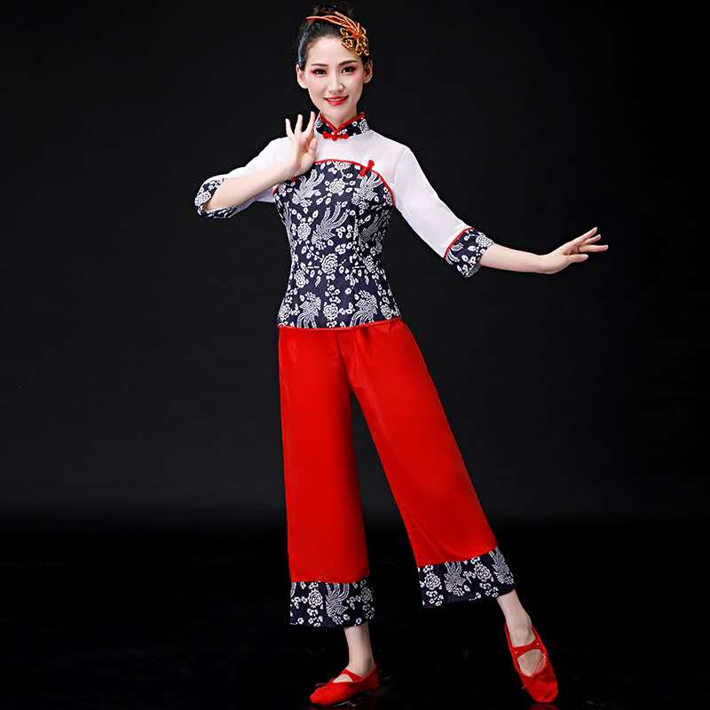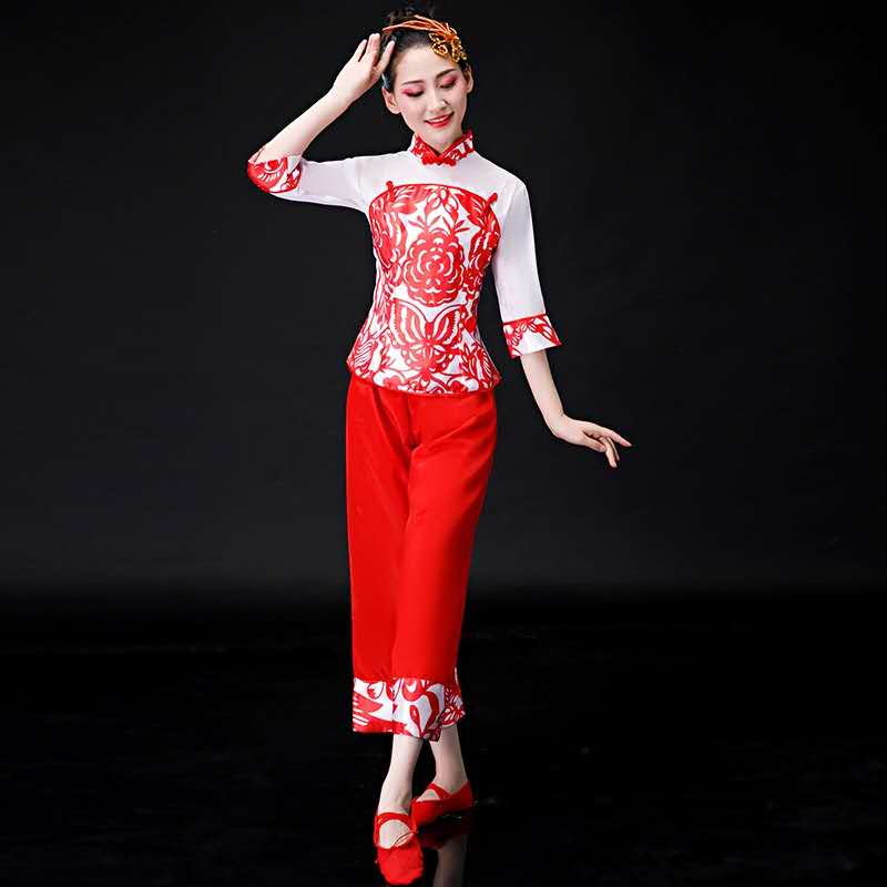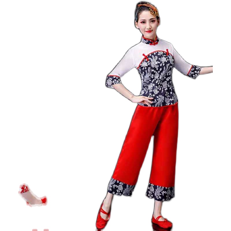 秧歌服演出服女2024新款民族广场舞斗笠套装村姑采茶舞蹈服装