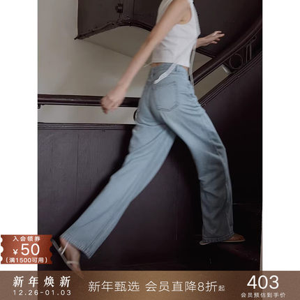 popchrio◆汉麻软牛仔薄款高腰宽松阔腿休闲裤拖地直筒长裤子女夏