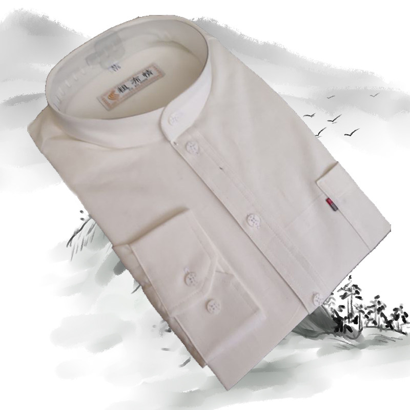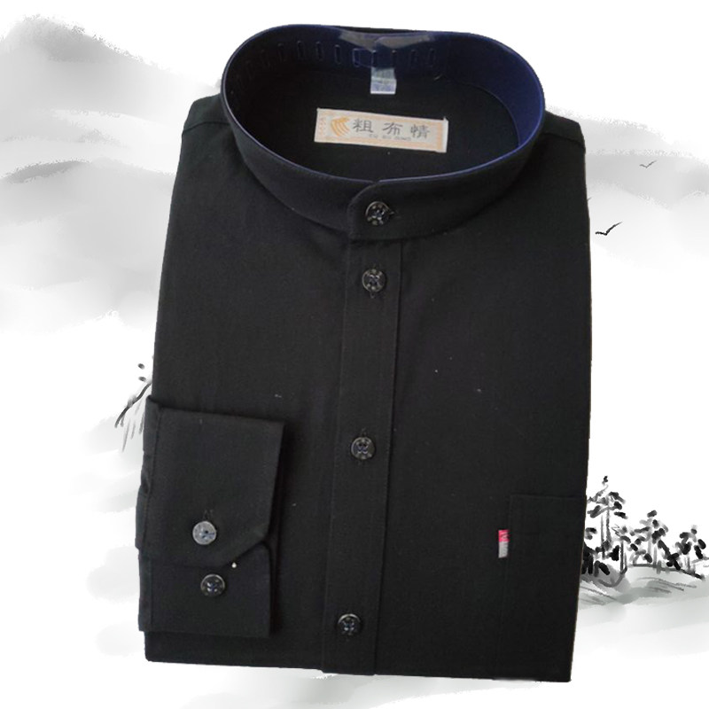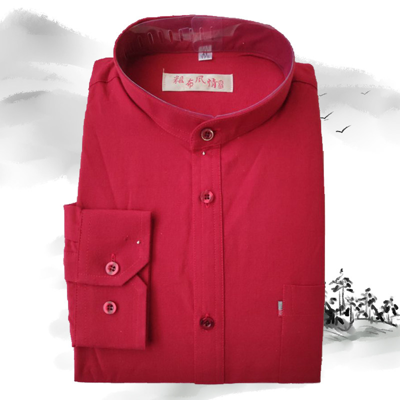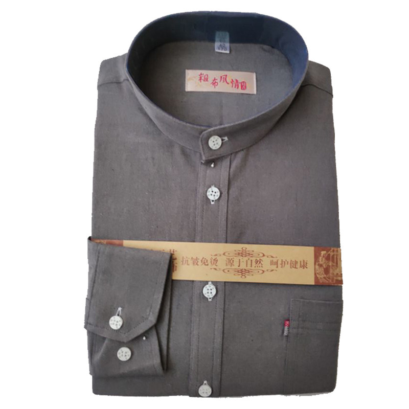 2023新款老粗布爸爸装立领衬衫男士上衣中青年长袖纯色男装单衬衣