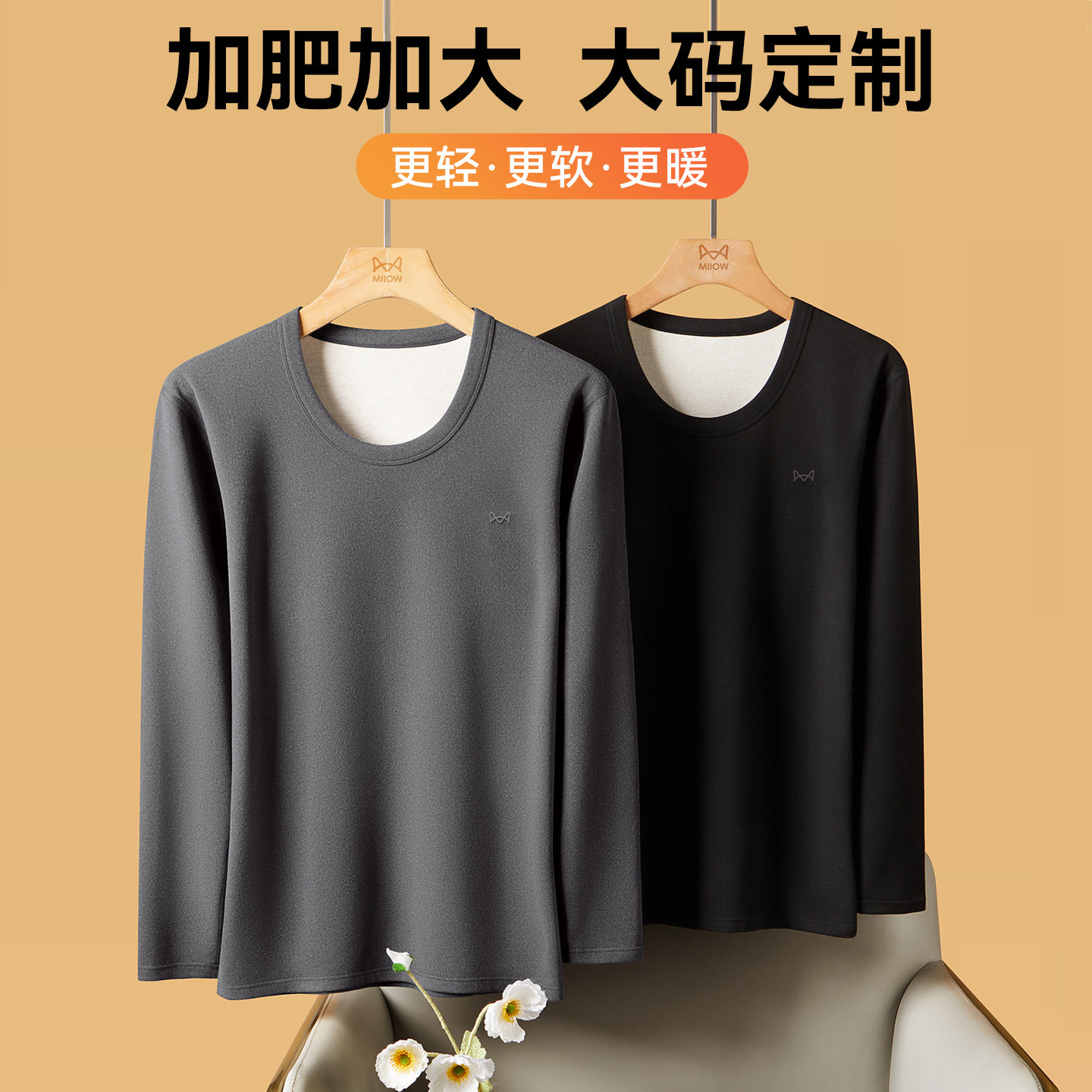 猫人保暖内衣男士德绒发热大码宽松胖子秋衣秋裤套装加肥加大冬季