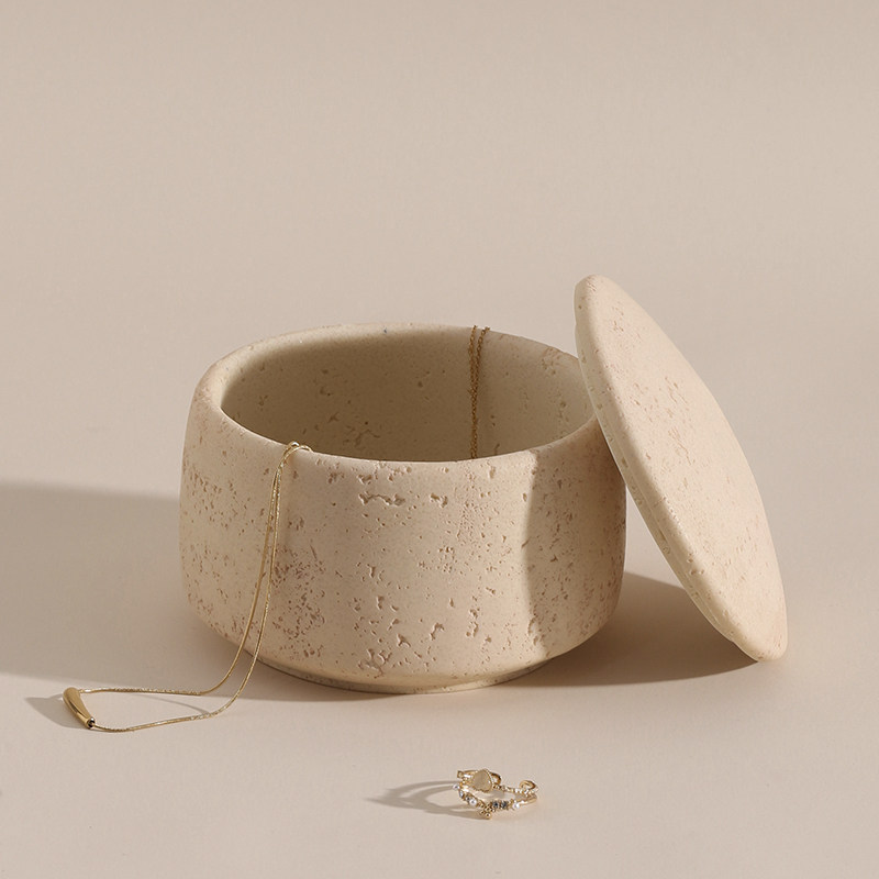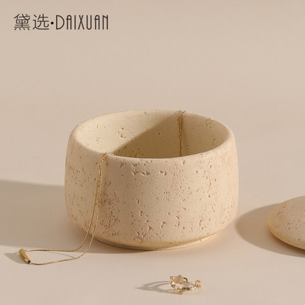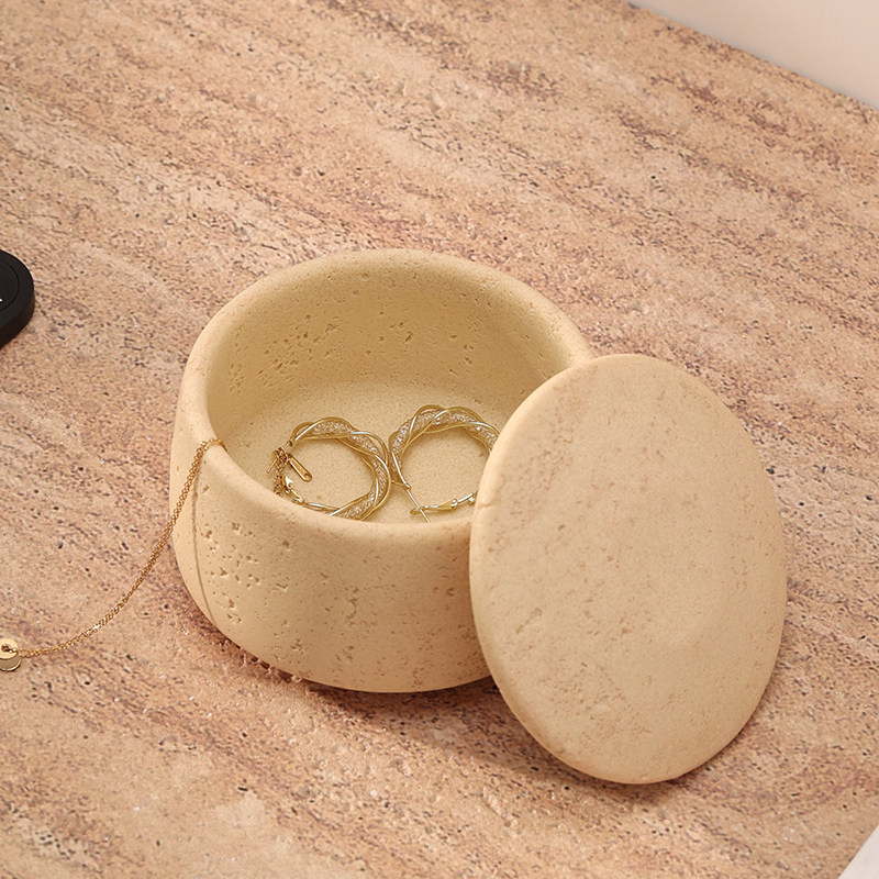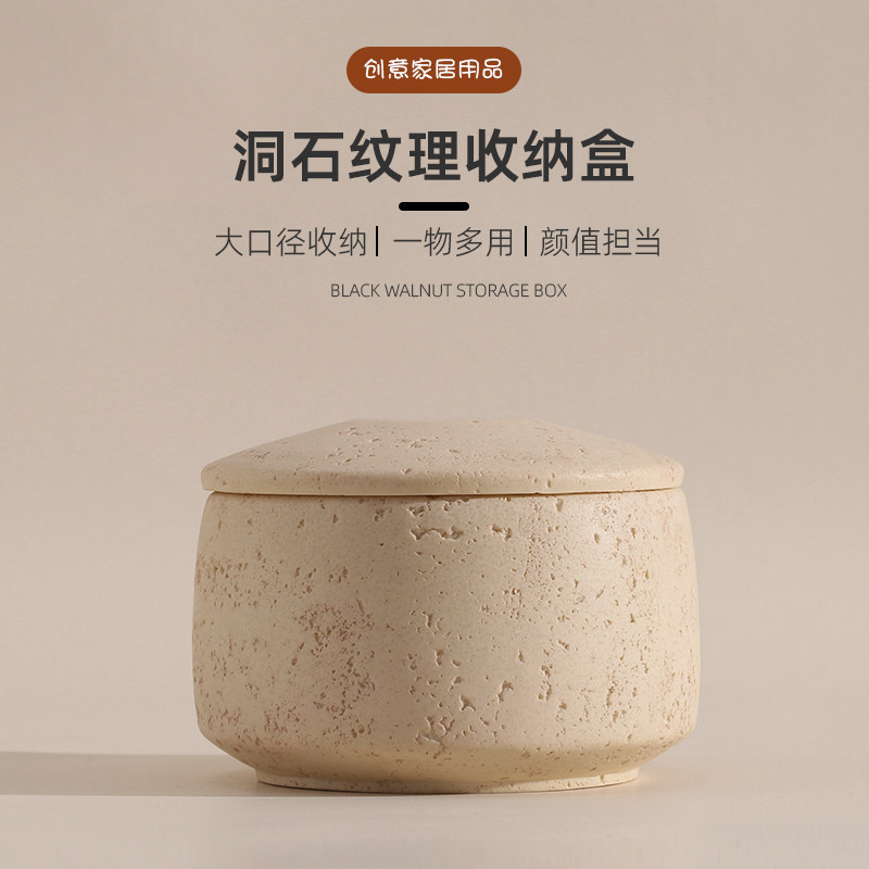 洞石桌面收纳盒客厅茶几零食杂物饰品首饰钥匙整理摆件玄关收纳罐