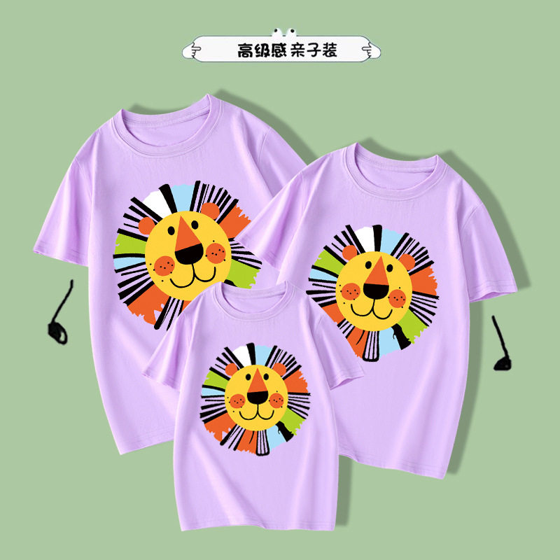 狮子头全家夏季热销亲子装网红短袖休闲一家三四口父母子女T恤潮
