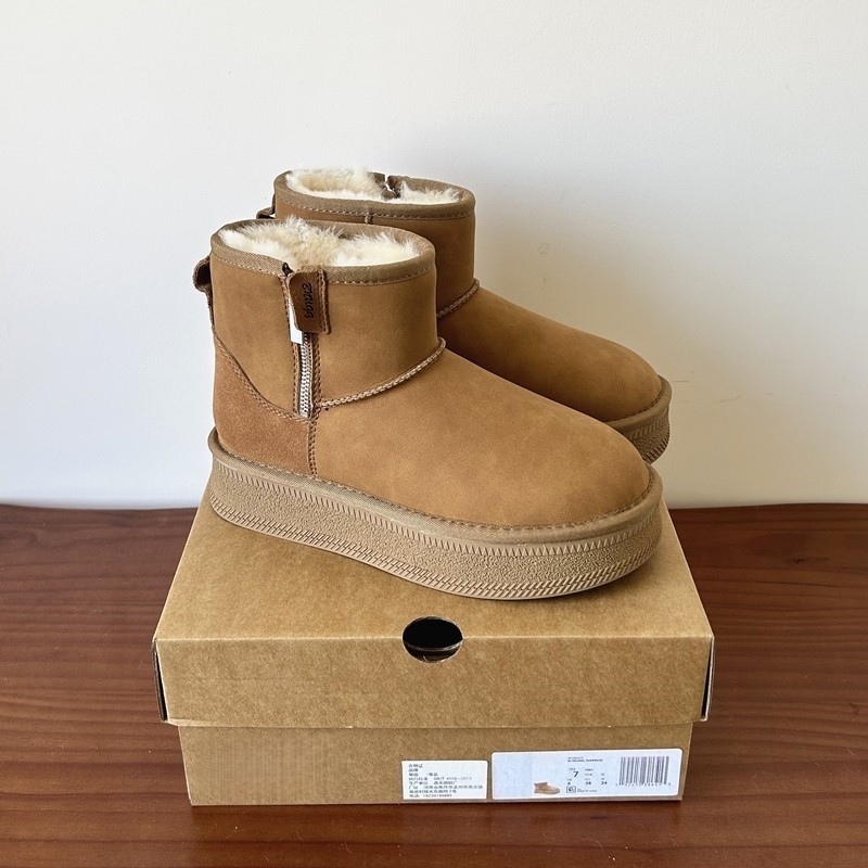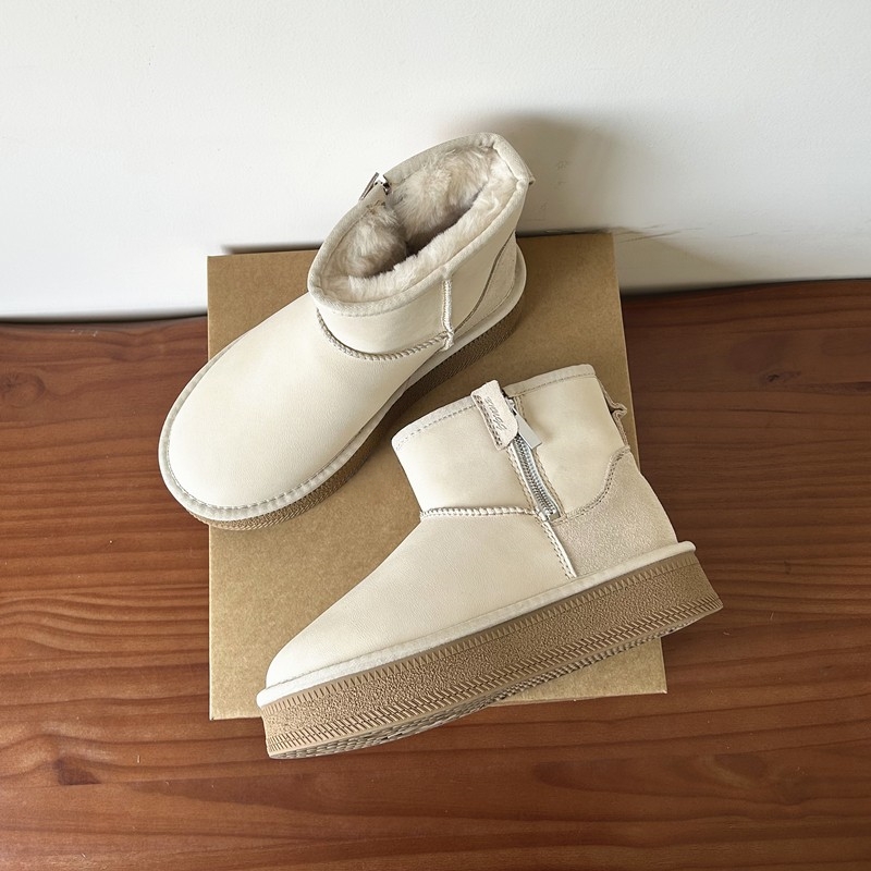 河南桑坡村羊皮毛一体真皮羊毛防泼水易打理拉链厚底雪地靴女短筒